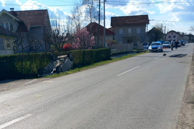 U naselju Ćela kod Prijedora, jučer su spletom oklonosti ili neprilagođene brzine u jarku završila dva vozila.