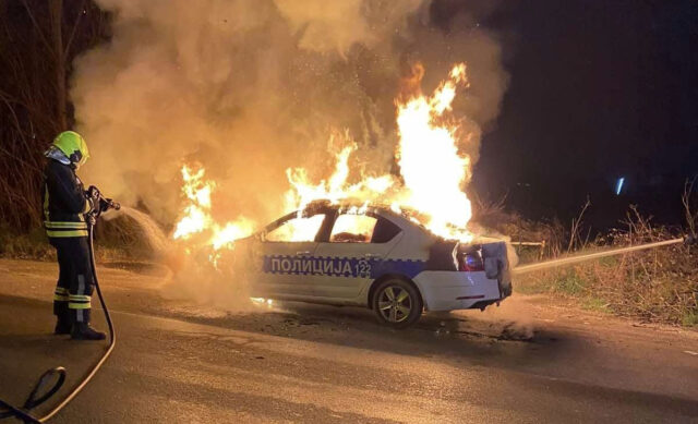 Početna Vijesti Gorio policijski automobil MUP-a, šestorica vatrogasaca gasila vatru