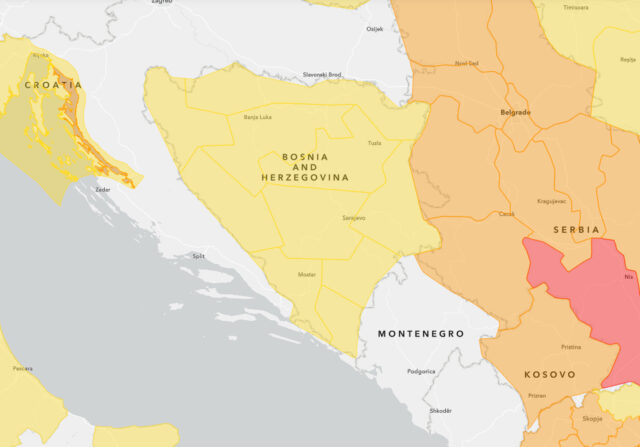 Budite svjesni da se očekuju visoke temperature vazduha. Mogući su zdravstveni rizici među ugroženim osobama, na primjer starije vrlo mlade osobe.