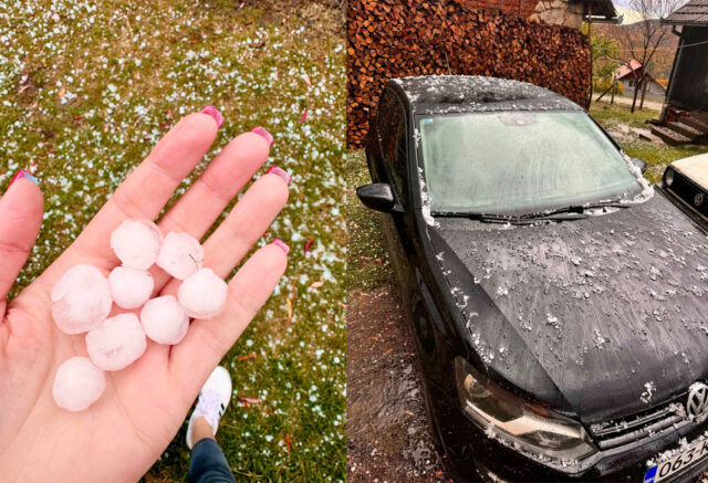 U naselju Gumnjani je padao led, koji je u početku bio sitan, a onda veličine oraha, objavljeno je na Fejsbuk stranici Kostajnica.