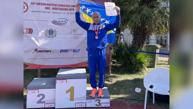 Dobra vijest za bosanskohercegovački, ali i sanski sport stigla je jučer iz Crne Gore. Naime, Ekrem Jakupović, trener Atletskog kluba „Sana“ iz Sanskog Mosta i jedan od najboljih bh atletičara u kategoriji veterana, ostvario je novi uspjeh na međunarodnoj sceni. On je u sastavu reprezentacije BiH na prvenstvu Balkana za veterane u atletici, koje je održanva gradu Baru, osvojio bronzanu medalju u disciplini na 5.000 metara , a do trećeg mjesta je došao u kategoriji M 70 sa vremenom 23:05.