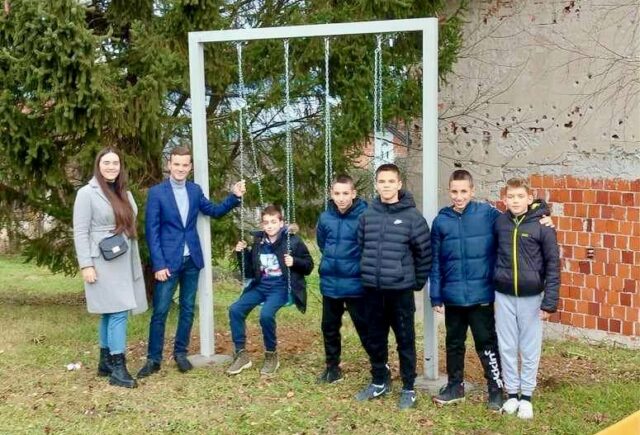 U prisustvu Mirnesa, Nikoline, radnika i učenika naše škole, danas je ovo prelijepo igralište stavljeno u funkciju i predato djeci na raspolaganje.