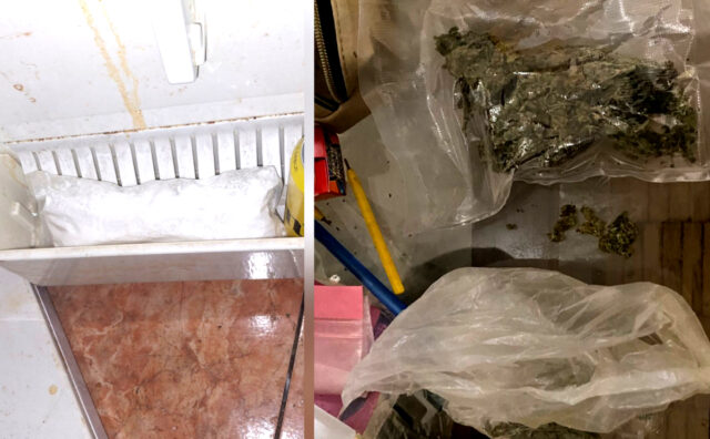 Prilikom kontrole osumnjičenog V.B. i pretresom stambenih prostorija koje isti koristi pronađena je i oduzeta bijela praškasta materija koja svojim izgledom asocira na opojnu drogu amfetamin ukupne bruto mase 767,9 grama, zelena biljna materija koja svojim izgledom asocira na opojnu drogu marihuana bruto mase 86,7 grama, smeđa smolasta materija koja svojim izgledom asocira na opojnu drogu hašiš bruto mase 19,9 grama i bijela praškasta materija koja svojim izgledom asocira na opojnu drogu kokain ukupne bruto mase 93,6 grama.
