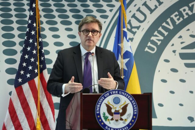 “Odluke koje su donijeli šefovi država članica NATO na Madridskom samitu 2022. predstavljaju za BiH šansu da gradi puno čvršći odnos sa NATO savezom. I ponuda EU je realna. Pristup jedinstvenom tržištu može značiti trenutačnu ekonomsku dobit. Zemlje koje su ušle na jedinstveno tržište u ovom stoljeću imaju trostruko veći prihod od prihoda koji su imali prije ulaska. Konačno, BiH može ući i u EU i dobiti pristup podršci koja se daje. Prema jednom od mjerenja, prosječan iznos koji EU šalje zemljama članicama je oko 4000 eura po glavi stanovnika; za Zapadni Balkan taj iznos je sada 123 eura po glavi stanovnika. Od 1995, Sjedinjene Države investirale su ogroman ljudski i novčani kapital u BiH s ciljem jačanja njenih institucija i njene odbrane od aktera – unutarnjih i vanjskih – koji bi željeli da je podijele ili unište. Građani BiH mogu računati da će Sjedinjene Države ostati opredijeljene za naše partnerstvo sa BiH, bilo da se radi o suočavanju sa političkom nestabilnošću unutar BiH ili o akutnoj prijetnji malignih aktera izvan BiH”, kazao je.