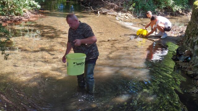 Članovi Sportsko ribolovnog društva „Devet rijeka“ poribili su danas pritoke rijeke Sane sa oko 250 kilograma potočne pastrmke lovne veličine i radi se o nastavku redovnih aktivnosti koje provode u sklopu svoga plana gazdovanja vodnim resursima.