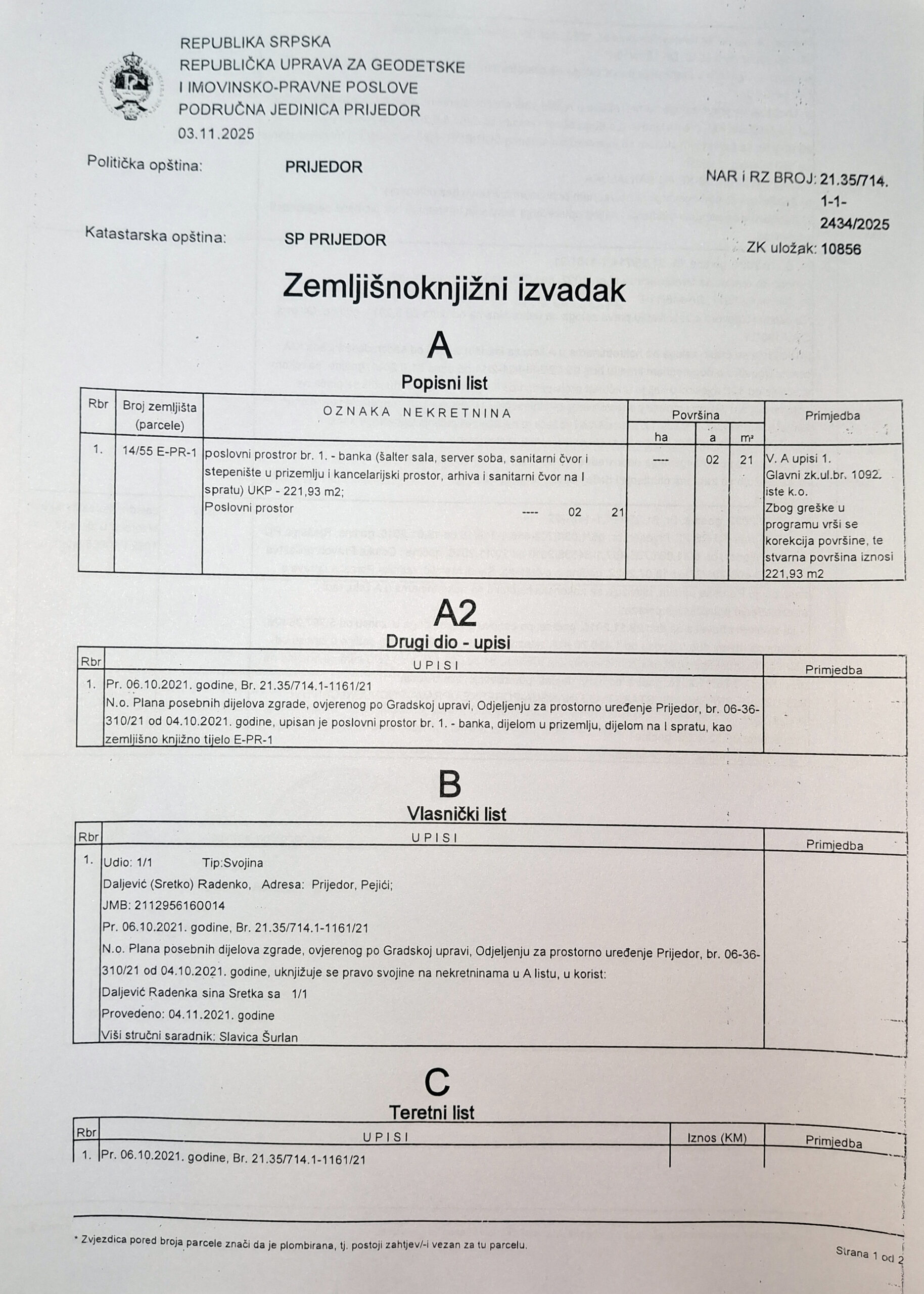 📍 Lokacija: Centar grada – Zanatska 41, Prijedor