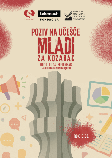 Udruženje “Bosanski kulturni centar Prijedor” iz Prijedora, u partnerstvu s humanitarnim udruženjem „Ruku na srce“ iz Sarajeva, uskoro započinje sa realizacijom projekta „Mladi za Kozarac“ koji obećava ljeto ispunjeno edukativnim, kreativnim i motivirajućim aktivnostima za mlade u ovom kraju. Ovaj projekat jedan je od podržanih kroz Program regionalnih grantova 2025, koji realizuju kompanija Telemach BH i Telemach fondacija.