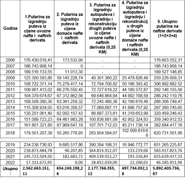 “Njihova visina je očito nesrazmjerna namjenskom trošenju, jer znatno povećava troškove prijevoza (putnika i robe) što korisnici plaćaju odmah (iako se sredstva često ni ne raspodjele mjesecima ili godinama, a kamoli upotrijebe), novi putevi se ne grade niti postojeći održavaju u skladu s potrebama, a kao što ste i sami utvrdili očit je i nesrazmjer između ukupno i namjenski utrošenih sredstava”, navodi.