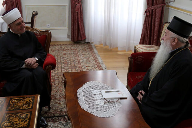 Mitropolit dabrobosanski Hrizostom i reisu-l-ulema Islamske zajednice u Bosni i Hercegovini Husein ef. Kavazović sastali su se jučer, poslije dužeg vremenskog perioda, u palati Mitropolije Dabrobosanske u Sarajevu te razgovarali o nizu tema.
