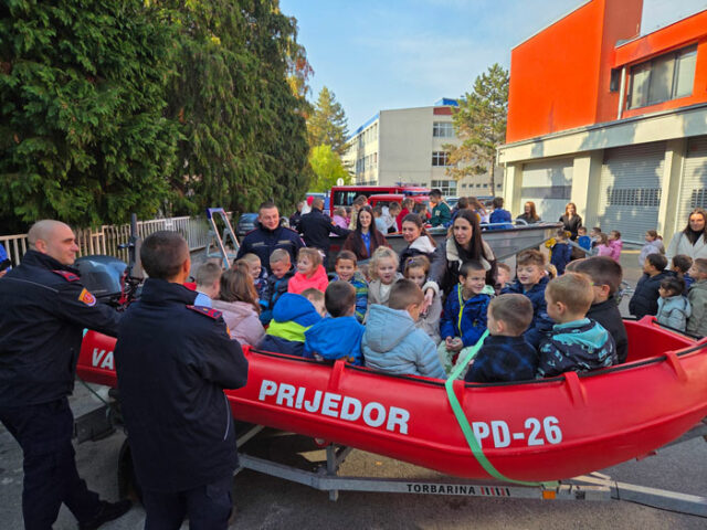 U okviru obilježavanja mjeseca zaštite od požara, Teritorijalna vatrogasno-spasilačka jedinica Prijedor danas je otvorila svoja vrata najmlađim sugrađanima. Predškolci i učenici nižih razreda osnovnih škola imali su priliku da se druže sa vatrogascima, upoznaju njihovu opremu i nauče osnovne vještine reagovanja u vanrednim situacijama.