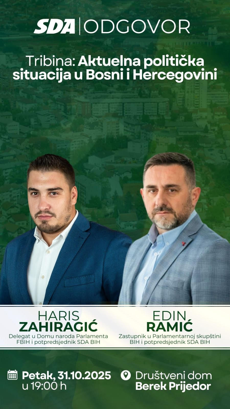 Gradska organizacija SDA Prijedor, organizuje Tribinu “Aktuelna politička situacija u Bosni i Hercegovini”.