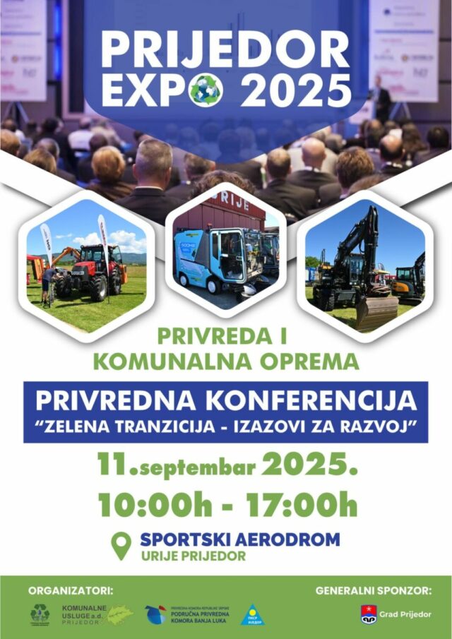 Sajam privrede i komunalne opreme “Prijedor Expo 2025” biće održan 11. septembra na Aerodromu Urije, u organizaciji preduzeća “Komunalne usluge”, Privredne komore Republike Srpske, Područne privredne komore Banjaluka – Kancelarija Prijedor i Komore samostalnih preduzetnika Prijedor. Generalni sponzor je Grad Prijedor.