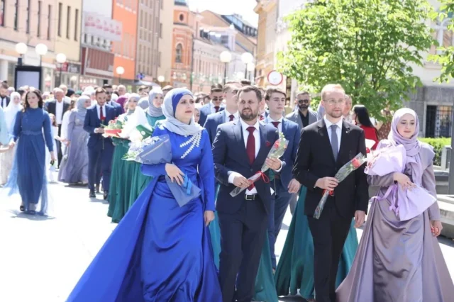 Banja Luka je danas dobila prve svršenike medrese, a maturanti su prošetali banjalučkim ulicama od Ferhadije džamije do Banskog dvora.