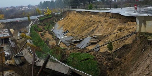 Došlo je do urušavanja puta u Kragujevcu. Urušavanje potpornih zidova i dijela pristupne saobraćajnice kod kompleksa Centar izvrsnosti počelo je jutros.