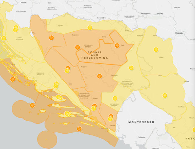 – Maksimalni udari vjetra daleko će biti jači na planinama. Tokom dana očekuju se jaki udari vjetra skoro na granici crvenog upozorenja. Da je za 10 posto više prešlo bi na crveno toliko je ozbiljna situacija na planinama. Zbog toga u planine treba izbjegavati u ovom periodu – navodi meteorolog.