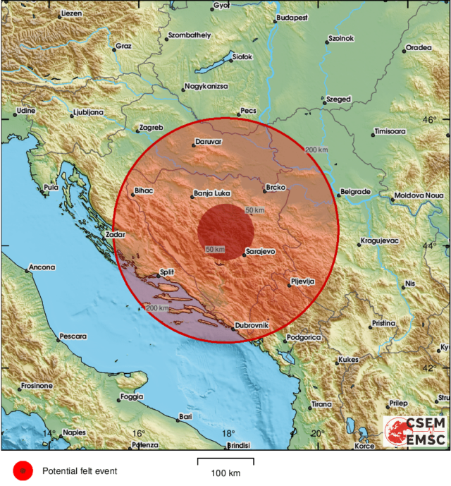 Zemljotres jačine 3,6 po Rihteru pogodio je BiH, pokazuju prvi podaci EMSC-a.