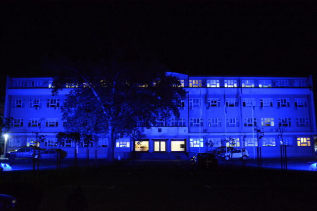 Zgrada opštine u plavoj boji povodom Svjetskog dana borbe protiv dijabetesa